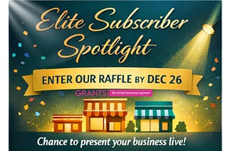 One lucky Elite subscriber will be randomly selected to introduce their business during our live grant session on Dec 29. Don’t miss your chance